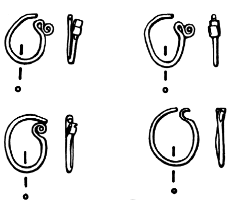 Borkovský, I. 1956: Esovité záušnice, jejich původ a význam. In: Referáty o pracovních výsledcích československých archeologů za rok 1955. Liblice: Československá akademie věd, 148–158.